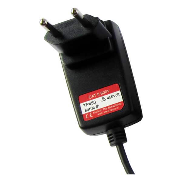 The Handyscope TP450 can also measure lower voltages, making it easy to log 24 Volt systems or capture switch patterns of control systems. In order to perform these measurements, a special measure lead is included with a connection at one side that plugs on the 230 V wall plug connector and 4 mm banana plugs at the other end, at which test probes can be placed.