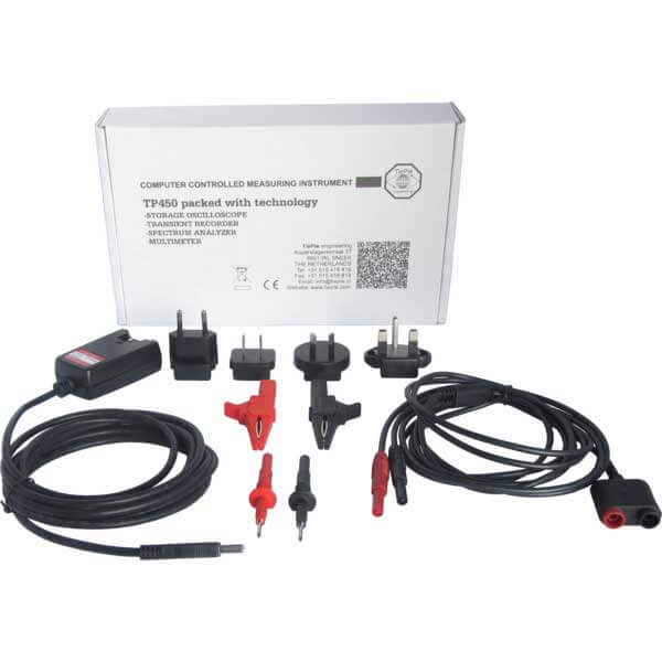 With this measure lead standard measurements can be conducted at electrical signals. Using the many Quick Setups removes the need of setting up the instrument (saving much time) and all focus can be directed to the measurement itself. Besides the advanced data logger of the Handyscope TP450, it can also be used as spectrum analyzer, voltmeter and protocol analyzer and obviously as standard oscilloscope (with limited maximum sampling rate of 250 kSa/s).