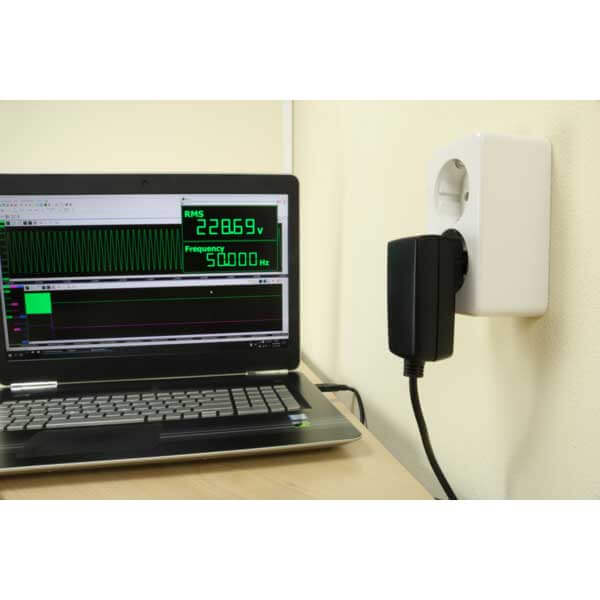 The Handyscope TP450 is a power quality analyzer, connected via USB to the computer. The advanced measurement software delivered by default contains Quick Setups that allow to start mains power logging measurements without specialized instrument knowledge. With the 450 V input range, the Handyscope TP450 can be plugged directly in a (110 – 230 V) wall socket to measure the mains voltage. No additional attenuator is required.