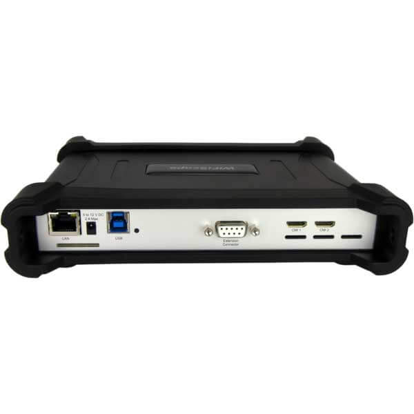 This powerful high speed WiFi oscilloscope combines fast sampling up to 500 MSa/s with high resolutions of 12, 14 and 16 bit, a large memory of 64 MSamples and an extremely accurate built-in 40 MHz 14 bit Constant Data Size (CDS) arbitrary waveform generator with 24 V peak to peak output, generating true form signals. The oscilloscope supports continuous streaming measurements up to 20 MSa/s and can be synchronized with other oscilloscopes using the CMI interface to form a multi channel combined instrument with synchronized time base. The CMI interface is available by default on the WiFiScope WS5. Optionally, the WiFiScope WS5 can be delivered with SureConnect connection test and resistance measurement on each channel.